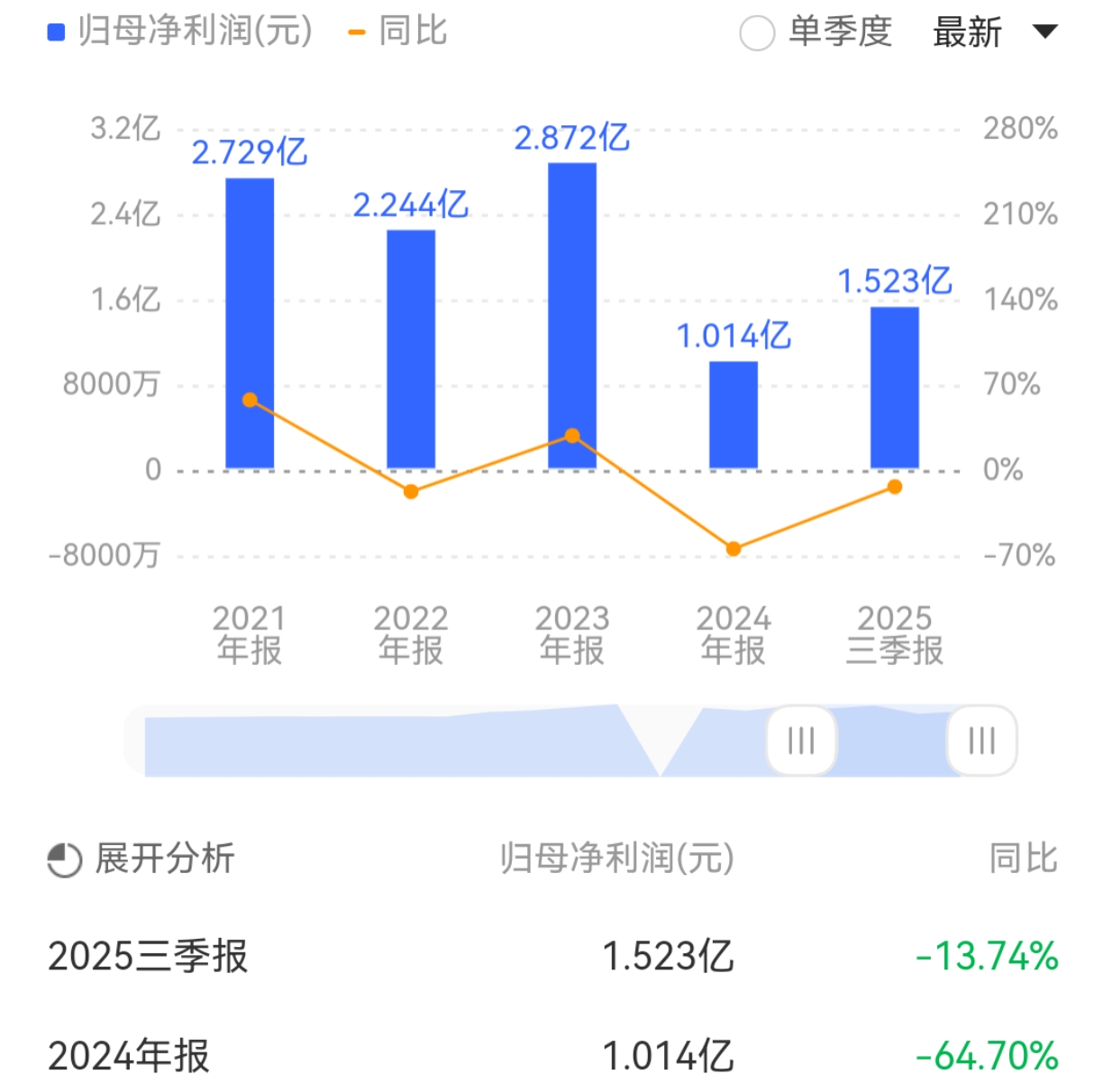 纵观近年业绩,2024年公司营收净利双双出现下滑,净利润降幅更是同比超过六成。2025年前三季度,公司业绩继续承压,实现营收42.66亿元,同比减少6.55%;净利润1.523亿元,同比下滑13.74%。