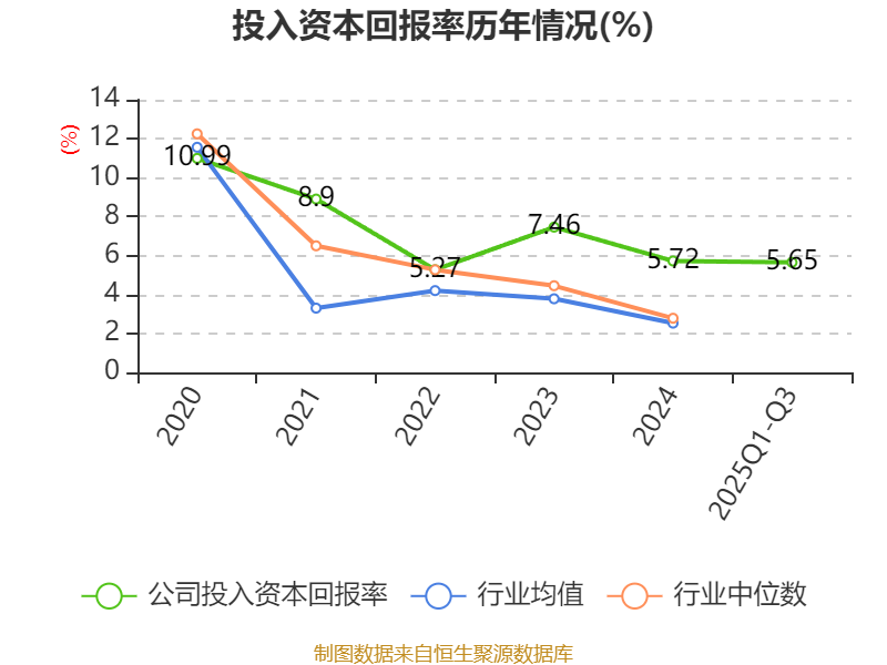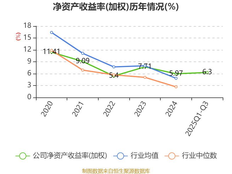 盈利能力方面, 2025年前三季度公司加权平均净资产收益率为6.3%,同比上升0.54个百分点。公司2025年前三季度投入资本回报率为5.65%,较上年同期上升0.16个百分点。