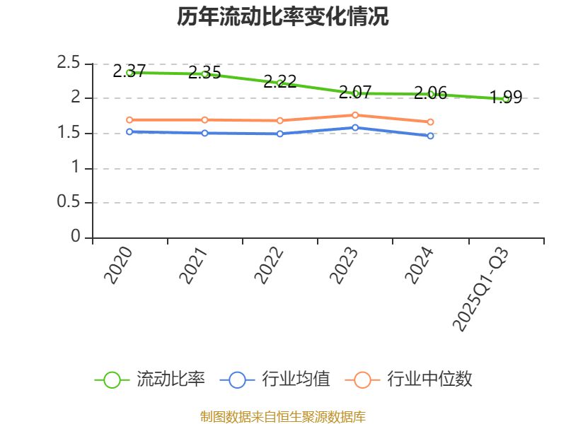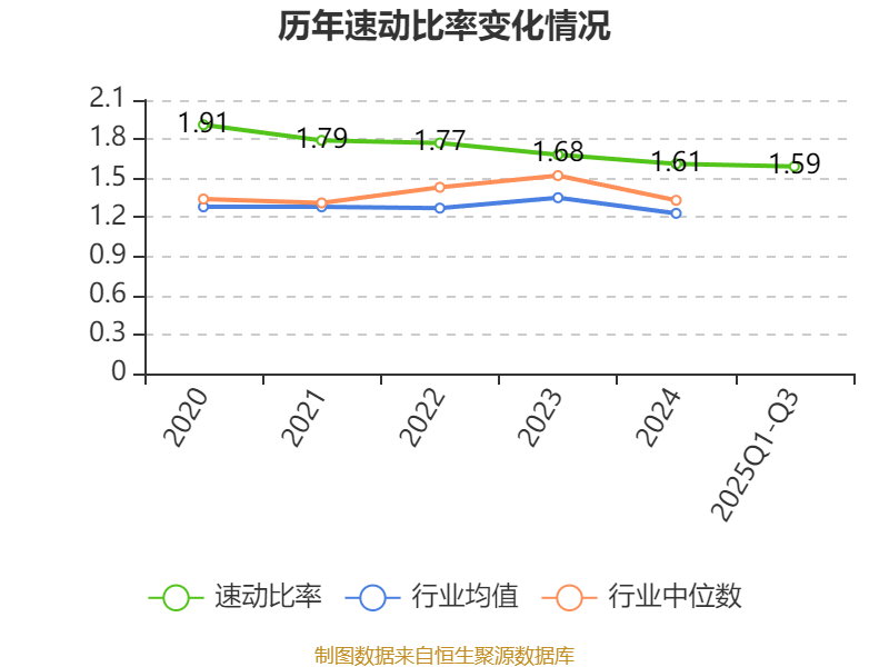 2025年前三季度,公司流动比率为1.99,速动比率为1.59。