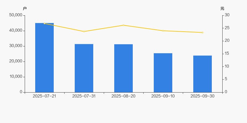 自2025年7月21日以来,公司股东户数连续4期下降,截至目前减幅为47.00%。2025年7月21日至2025年9月30日区间股价下降13.11%。