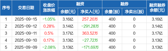 中远海科:融资净买入257.2万元,融资余额3.16亿元(09-15)