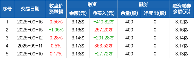 中远海科:融资净偿还419.82万元,融资余额3.12亿元(09-16)