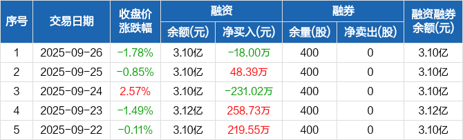 中远海科:融资净偿还18万元,融资余额3.1亿元(09-26)