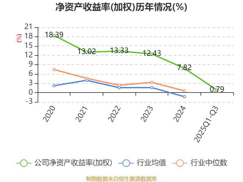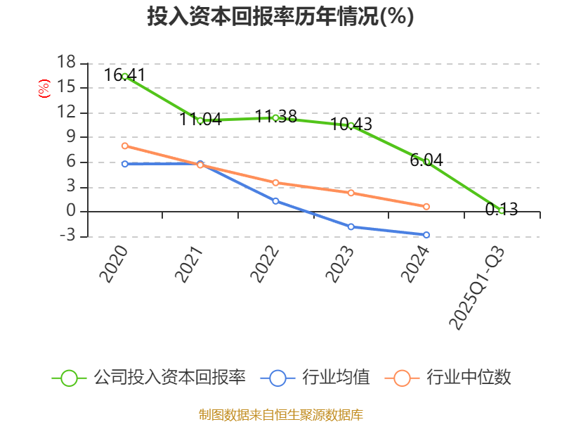 盈利能力方面, 2025年前三季度公司加权平均净资产收益率为0.79%,同比下降7.82个百分点。公司2025年前三季度投入资本回报率为0.13%,较上年同期下降7.08个百分点。
