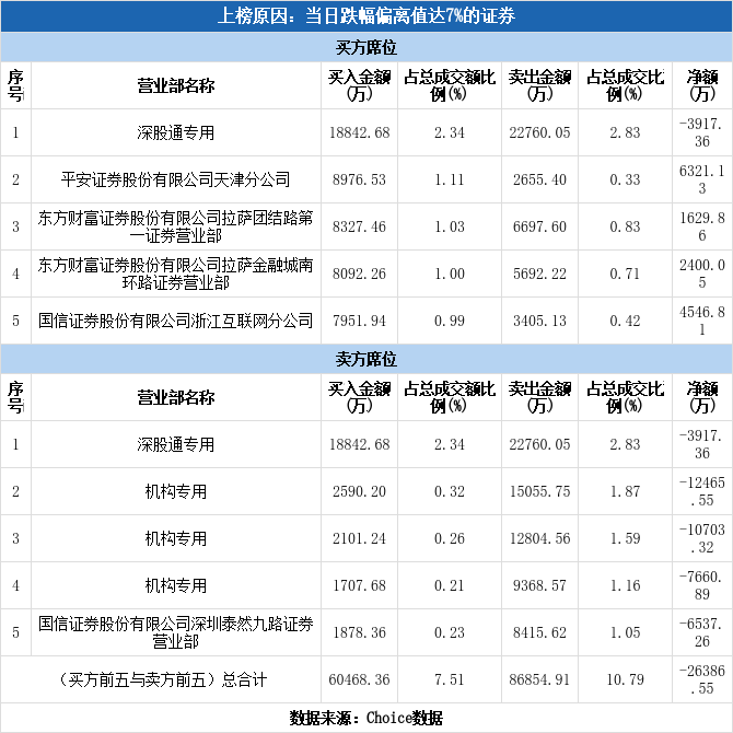 多主力现身龙虎榜,和而泰跌停(12-05)