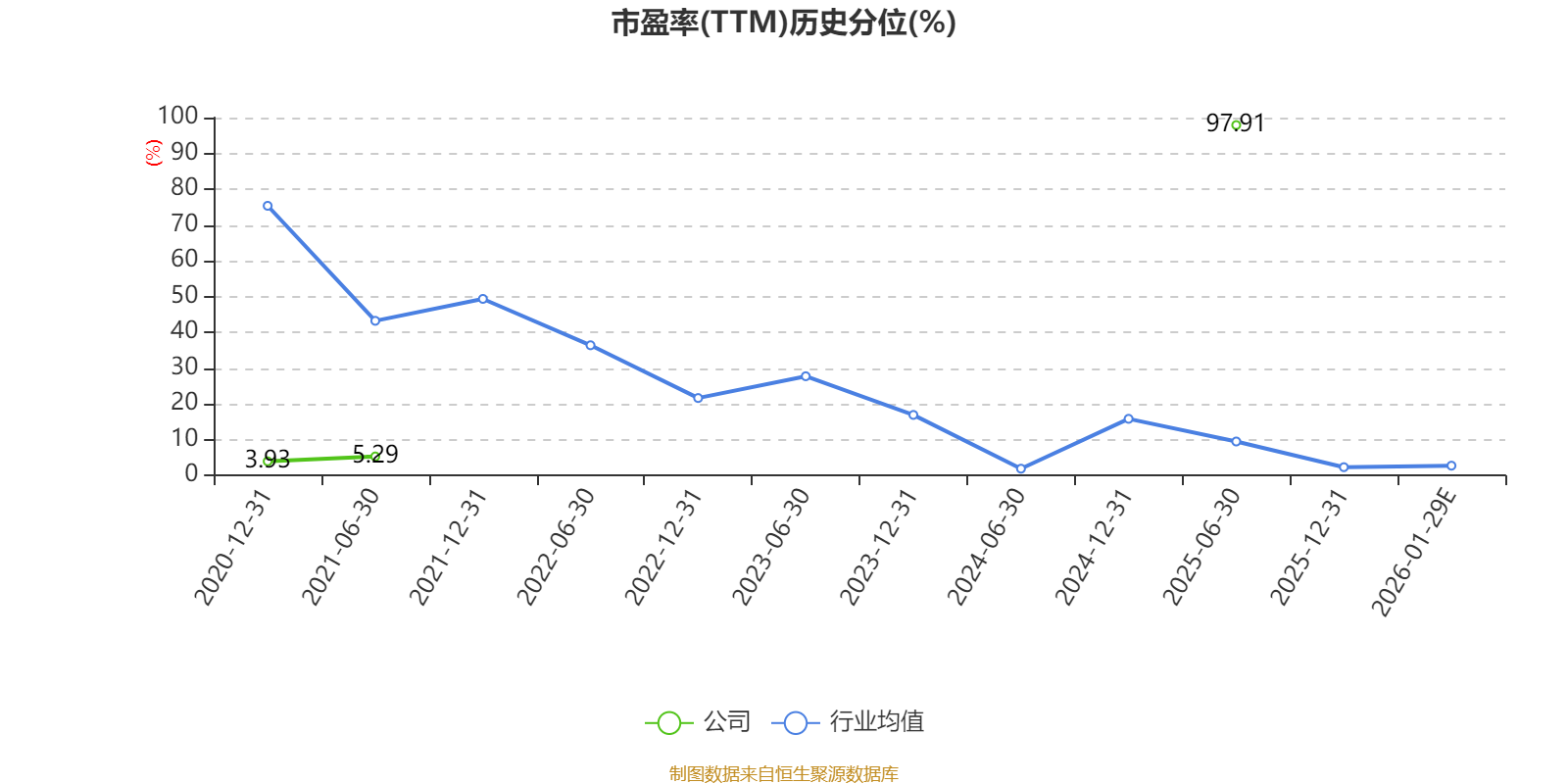 市盈率、市净率为负时,不显示当期分位数,会导致折线图中断。