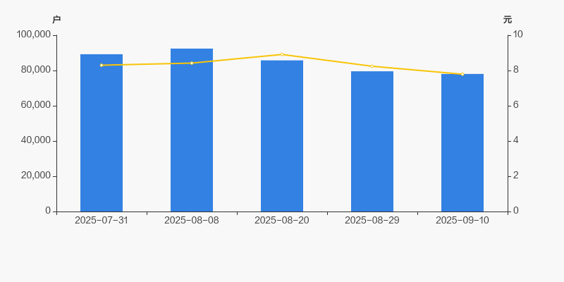 自2025年8月8日以来,公司股东户数连续3期下降,截至目前减幅为15.56%。2025年8月8日至2025年9月10日区间股价下降7.48%。