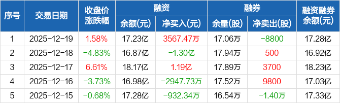 多氟多:融资净买入3567.47万元,融资余额17.23亿元(12-19)
