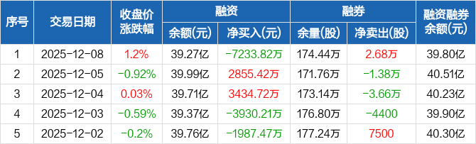 海康威视:融资净偿还7233.82万元,融资余额39.27亿元(12-08)