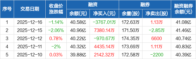 海康威视:融资净偿还3767.01万元,融资余额40.58亿元(12-16)