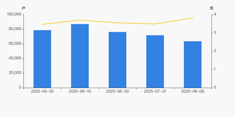 截至2025年8月8日,公司最新流通股本为11.36亿股。户均持有流通股数量由上期的1.58万股上升至1.79万股,户均流通市值6.83万元。