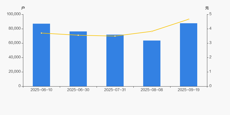 2025年6月10日至今,公司股东户数有所增长,区间涨幅为0.69%。2025年6月10日至2025年9月19日区间股价上涨25.95%。