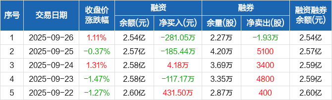 天虹股份:融资净偿还281.05万元,融资余额2.54亿元(09-26)