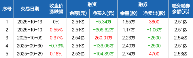 天虹股份:融资净偿还5.34万元,融资余额2.51亿元(10-13)