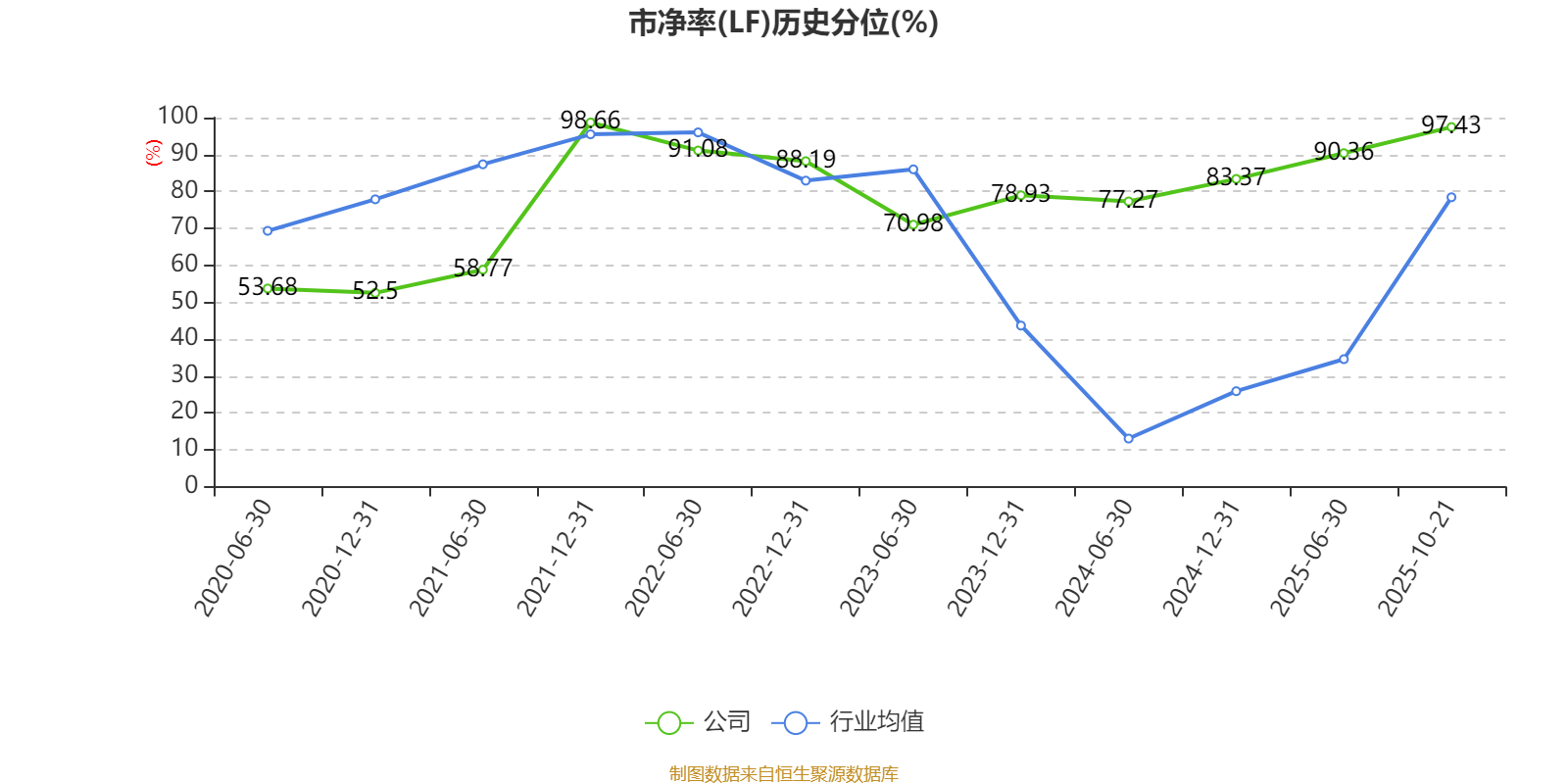 市盈率、市净率为负时,不显示当期分位数,会导致折线图中断。