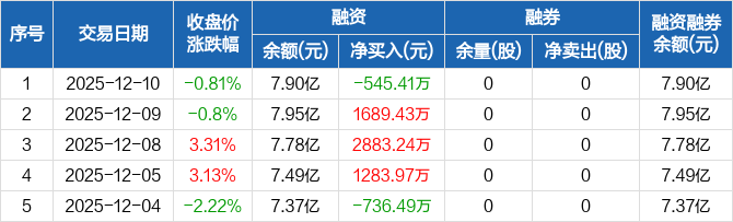 胜利精密:融资净偿还545.41万元,融资余额7.9亿元(12-10)