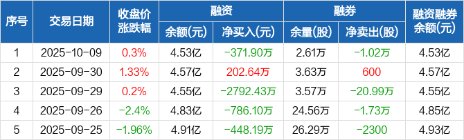 万里扬:融资净偿还371.9万元,融资余额4.53亿元(10-09)