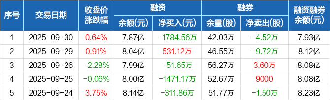 启明星辰:融资净偿还1784.56万元,融资余额7.87亿元(09-30)