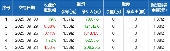 众业达:融资净偿还73.67万元,融资余额1.37亿元(09-30)