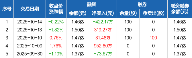 众业达:融资净偿还422.17万元,融资余额1.46亿元(10-14)