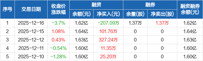 众业达:融资净偿还207.09万元,融资余额1.62亿元(12-16)