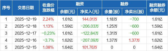 众业达:融资净买入144.01万元,融资余额1.61亿元(12-19)