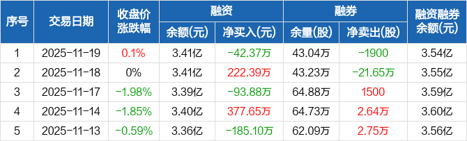 巨星科技:融资净偿还42.37万元,融资余额3.41亿元(11-19)