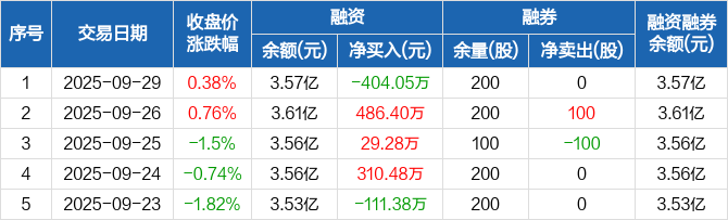 中南文化:融资净偿还404.05万元,融资余额3.57亿元(09-29)