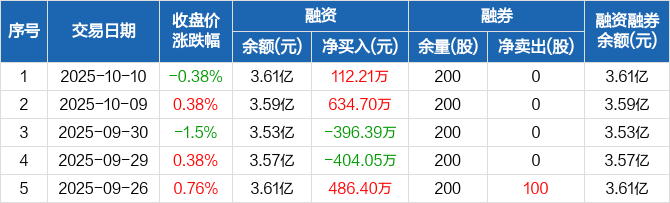 中南文化:融资净买入112.21万元,融资余额3.61亿元(10-10)