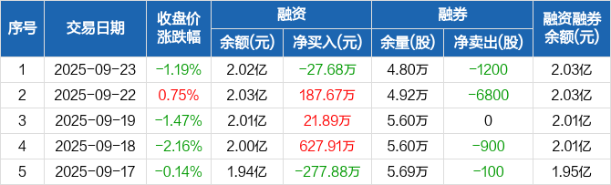 摩恩电气:融资净偿还27.68万元,融资余额2.02亿元(09-23)
