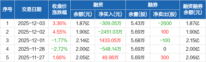 摩恩电气:融资净偿还309.05万元,融资余额1.87亿元(12-03)