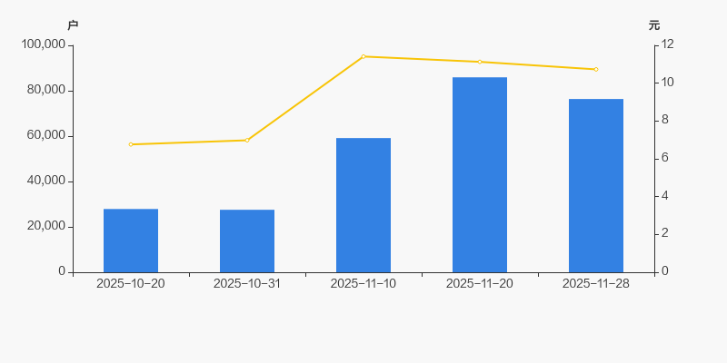 2025年10月20日至今,公司股东户数成倍增长,区间涨幅达173.91%。2025年10月20日至2025年11月28日区间股价上涨58.73%。