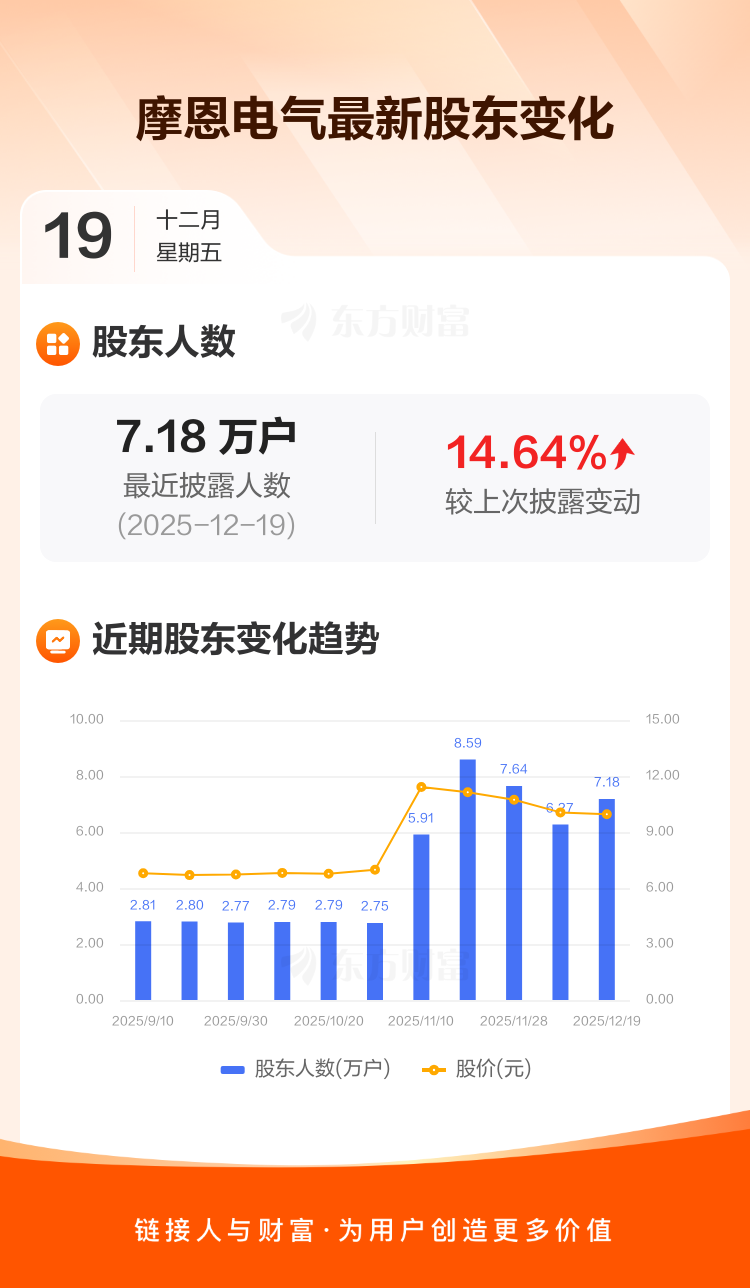 摩恩电气:截至12月19日最新股东户数7.18万户,较上期增加14.64%