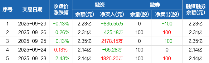 长高电新:融资净偿还835.55万元,融资余额2.23亿元(09-29)