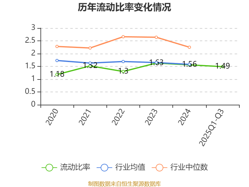 2025年前三季度,公司流动比率为1.49,速动比率为1.14。