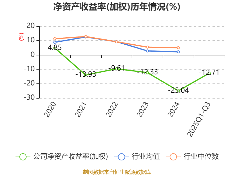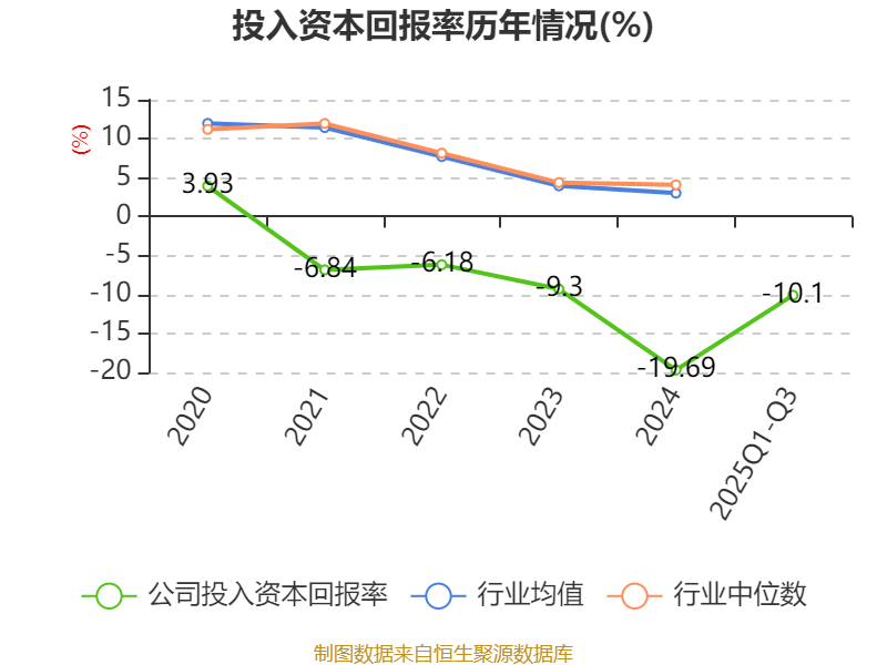 盈利能力方面, 2025年前三季度公司加权平均净资产收益率为-12.71%,同比下降5.11个百分点。公司2025年前三季度投入资本回报率为-10.1%,较上年同期下降4个百分点。