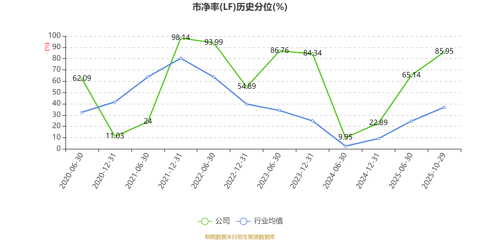 市盈率、市净率为负时,不显示当期分位数,会导致折线图中断。