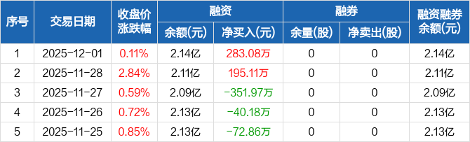 松芝股份:融资净买入283.08万元,融资余额2.14亿元(12-01)