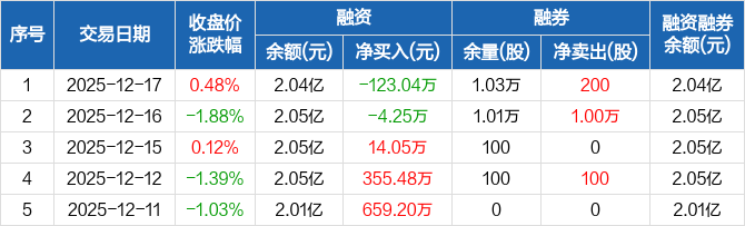 松芝股份:融资净偿还123.04万元,融资余额2.04亿元(12-17)
