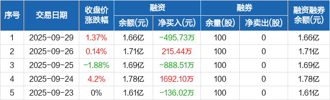 百川股份:融资净偿还495.73万元,融资余额1.66亿元(09-29)