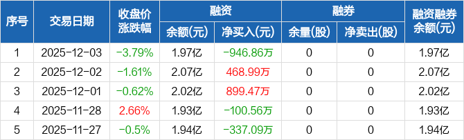 百川股份:融资净偿还946.86万元,融资余额1.97亿元(12-03)