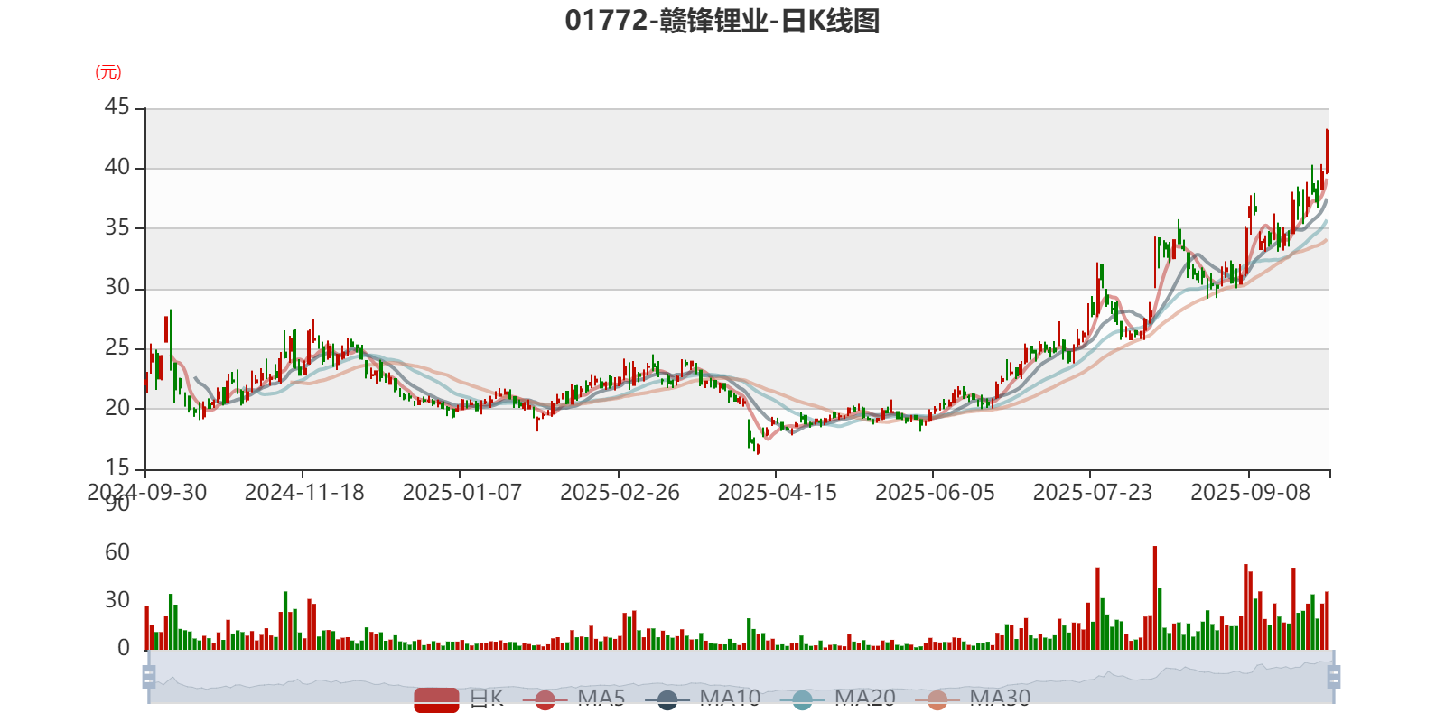 中证智能财讯赣锋锂业(01772)9月30日披露2025年中期报告。报告期内,公司实现营业收入82.58亿元,同比下降13.3%;归母净利润亏损5.36亿元,上年同期亏损7.59亿元;据报告显示,赣锋锂业基本每股收益为-0.27元,平均净资产收益率为-1.32%。