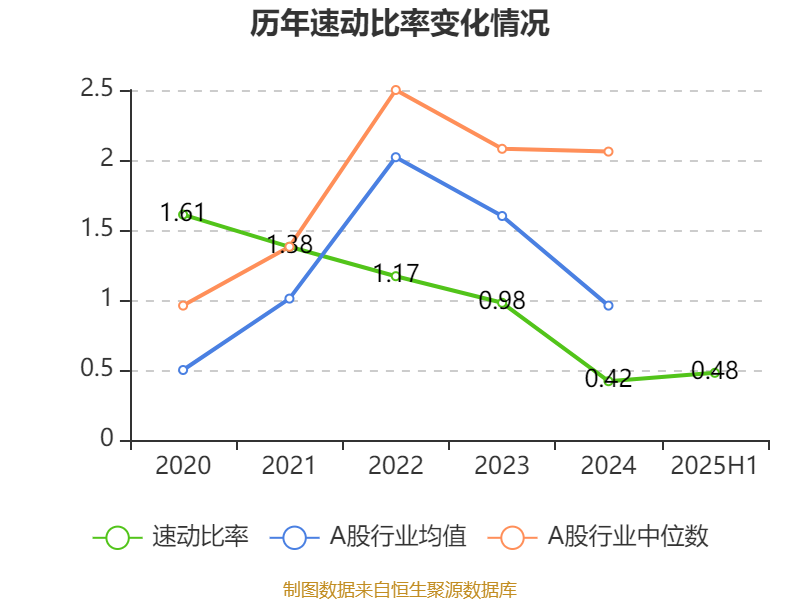 2025年上半年,公司流动比率为0.75,速动比率为0.48。