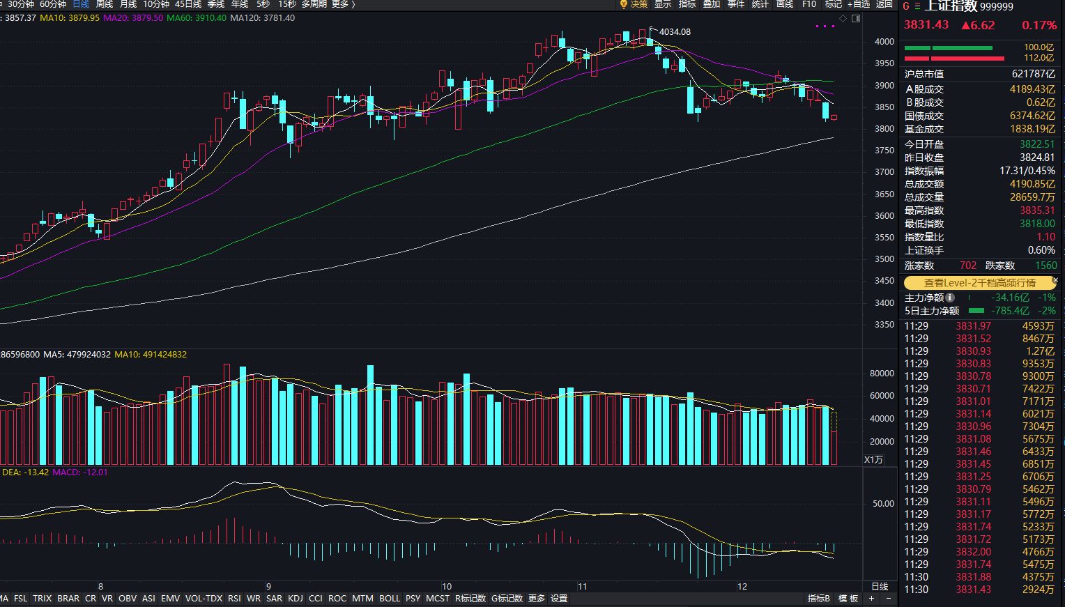 截至午间收盘,沪指上涨0.17%,报3831.43点;深成指上涨0.83%,报13021.35点;创业板指上涨1.21%,报3108.8点;科创50指数上涨0.32%,报1297.49点;北证50指数下跌0.83%,报1427.75点。全市场上涨个股有1579家,下跌个股有3727家,30只股涨停。两市半日合计成交10249亿元。