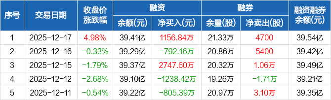 赣锋锂业:融资净买入1156.84万元,融资余额39.41亿元(12-17)