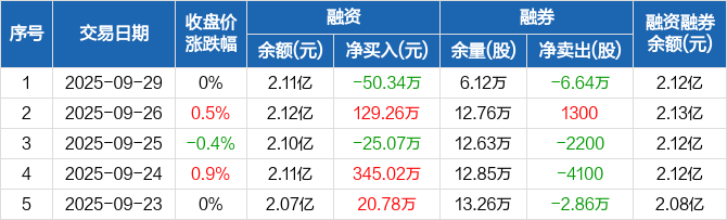 珠江啤酒:融资净偿还50.34万元,融资余额2.11亿元(09-29)