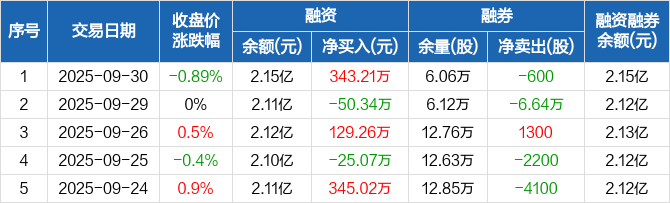 珠江啤酒:融资余额2.15亿元,创近一年新高(09-30)