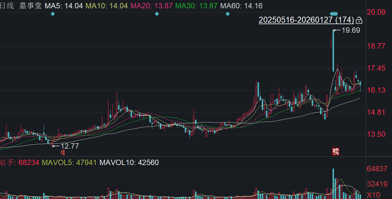 二级市场上,截至停牌前一个交易日1月27日收盘,嘉事堂报16.40元/股,总市值约47.84亿元,近一年来公司股价累计上涨约三成。