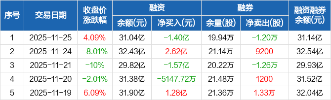 天齐锂业:融资净偿还1.4亿元,两市排名第八(11-25)