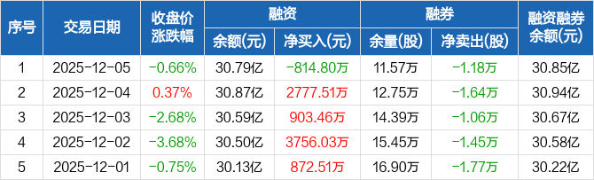 天齐锂业:融资净偿还814.8万元,融资余额30.79亿元(12-05)
